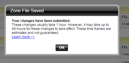 Click on "Save Zone File button" above, and you will receive the message below if you did it well: